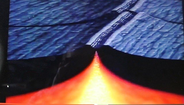 画 面 に 見 る よ う に 、 地 球 内 部 マ グ マ が 地 表 に 迫 り